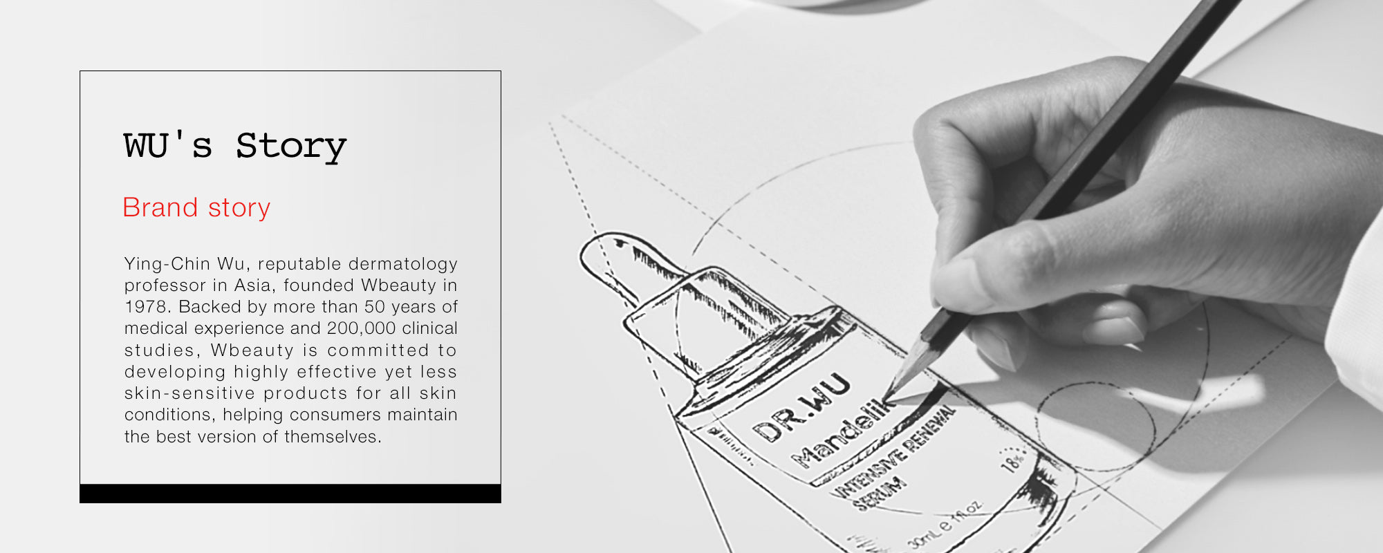 Founded in 2003 by Dr. Wu, Asia's reputable dermatology professor, and his eldest son Eric Wu, the brand is backed by extensive clinical experience as well as specialized studies of skin science. DR.WU products are formulated based on physicians' prescriptions and produced using world's advanced cosmetic medicine technologies; at a time when clinical skincare solutions were still in the infancy stage, DR.WU's idea of delivering clinical skincare in highly effective yet less skin-sensitive products attracted the attention of entertainers and celebrities, and paved way for a new product trend in Taiwan's clinical skincare market.