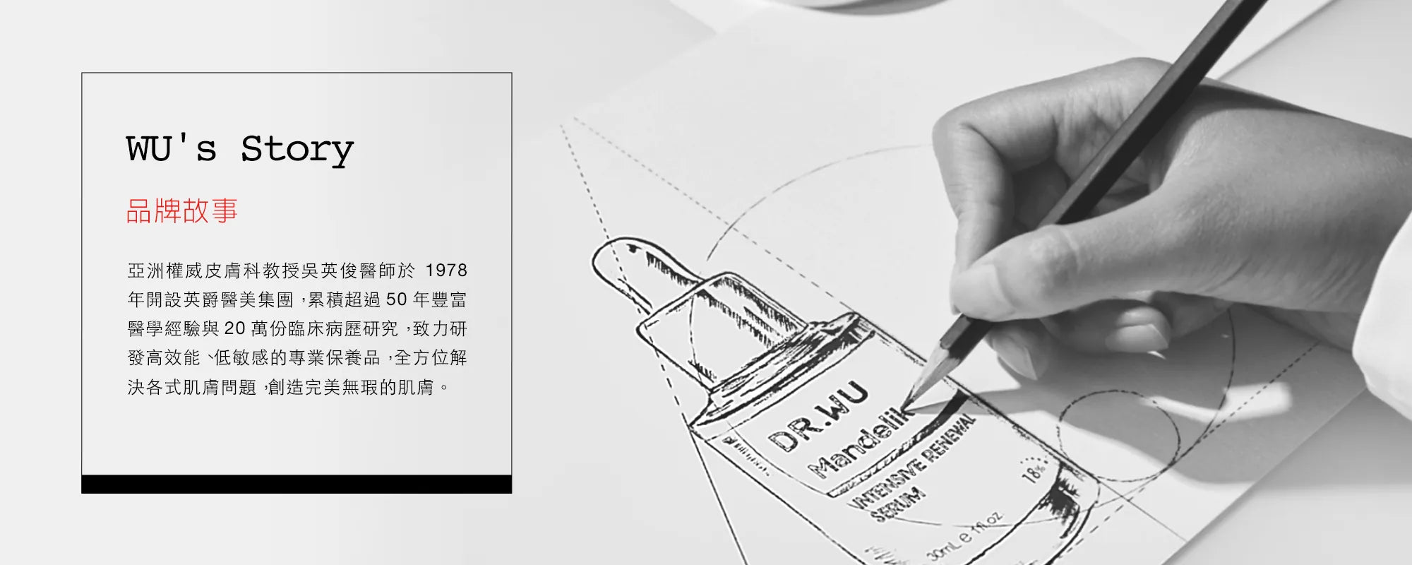 由亞洲權威皮膚科教授吳醫師與其長子吳奕叡於2003年創立,憑藉豐富臨床經驗與皮膚醫學領域的專精研究,以醫師配方為基礎,結合國際頂尖醫學趨勢與尖端醫美科技,於醫美保養品尚未發展萌芽之際,率先提出「微診保養」概念,以高效能、低敏感的專業保養品,令無數巨星名媛們趨之若鶩,更引領市場風潮,成為醫美保養市場先驅。